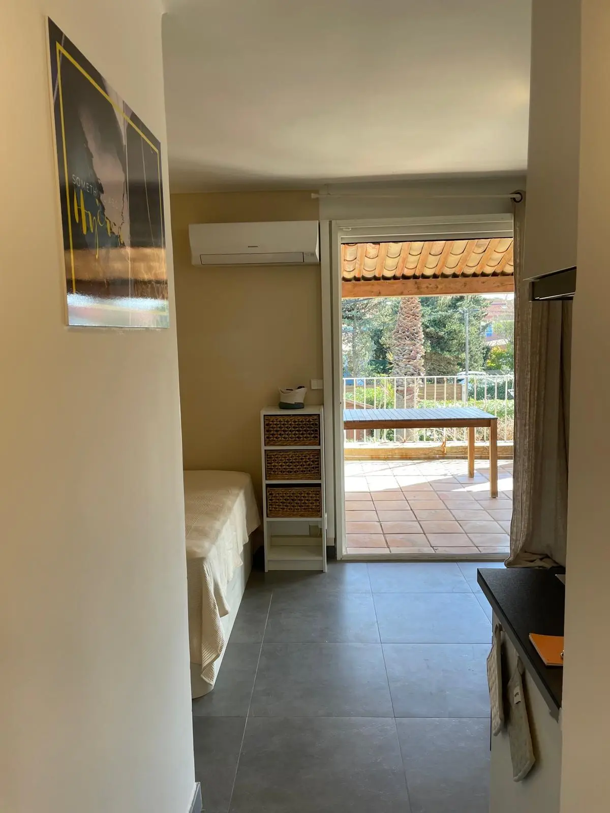 Logement climatisé, exposé plein sud côté jardin, vue mer coté gauche