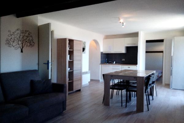 Description: Au 2eme étage orienté ouest avec de beaux couchers de soleil sur une terrasse de 11 m2 équipée pour les repas, l'appartement est composé d'une pièce de vie avec canapé lit en 140, TV TNT et chaines étrangères, coin salon et rangements, kitchenette équipée de plaque vitro céramique, micro ondes, lave vaisselle, grand réfrigérateur congélateur et climatisation réversible.